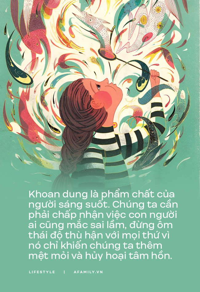 Khoan dung là phẩm chất của người sáng suốt. Chúng ta cần phải chấp nhận việc con người ai cũng mắc sai lầm, đừng ôm thái độ thù hận với mọi thứ vì nó chỉ khiến chúng ta thêm mệt mỏi và hủy hoại tâm hồn.