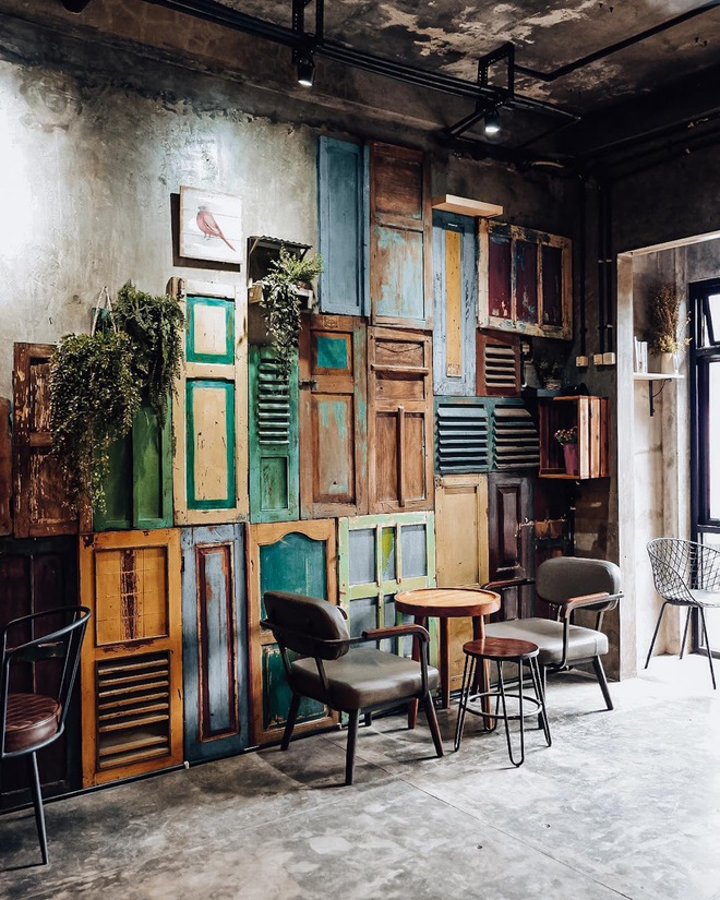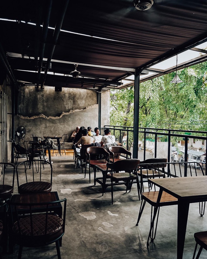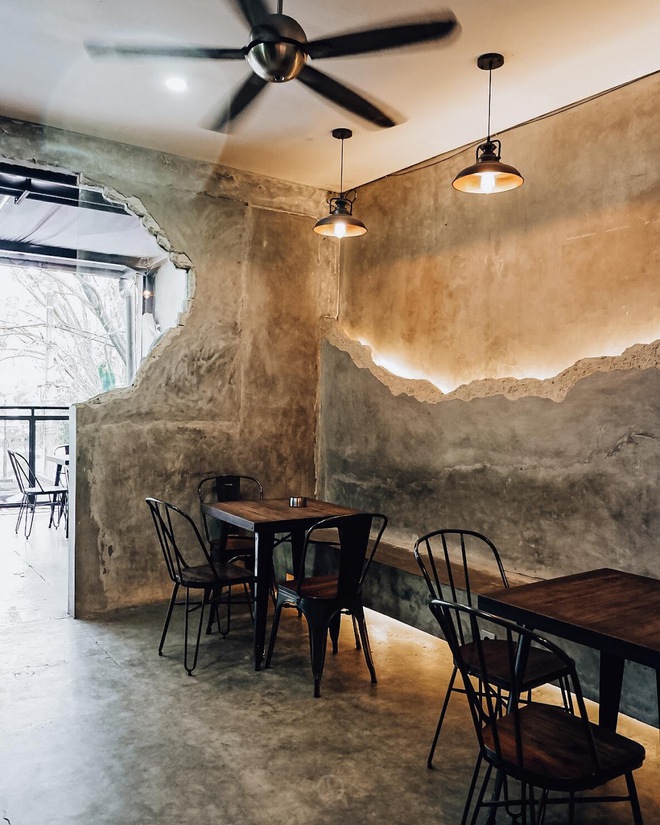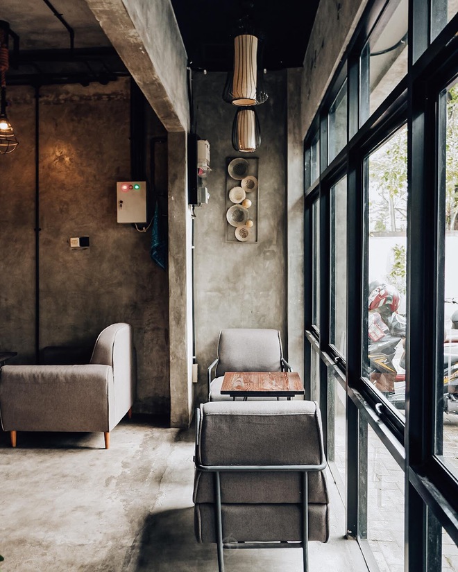 Tông màu chủ đạo được sử dụng trong phong cách thiết kế và trang trí quán là tông xám đen hiện đại, thu hút, từ những mảng tường màu xi măng loang lổ cho đến những chiếc bàn gỗ, ghế sắt hay sofa..